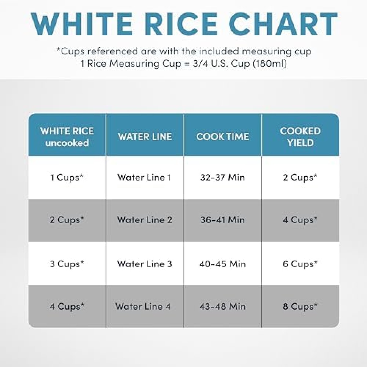 Perfectly prepares 2 to 8 cups of any variety of cooked rice or grains