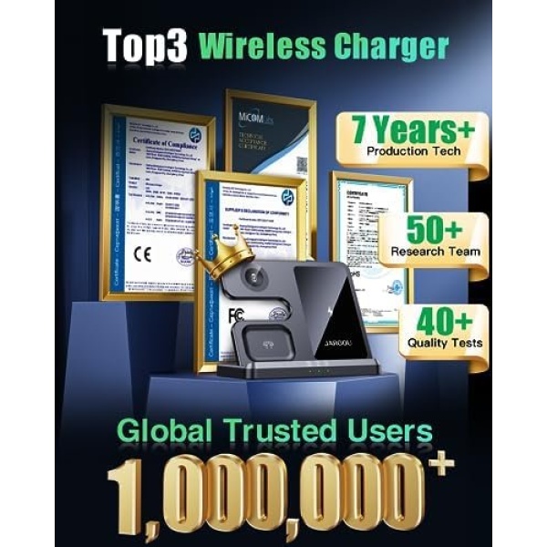 【What You’ll Get】 The package includes: 3 in 1 charging station for apple *1, Type-C Power Cable *1, 18W adapter *1, user manual *1. Each wireless charger we sent to you has gone through a series of quality inspection processes