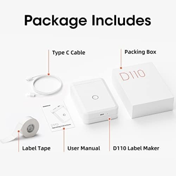 NIIMBOT D110 Label Maker Machine with Tape Portable Bluetooth Label Printer